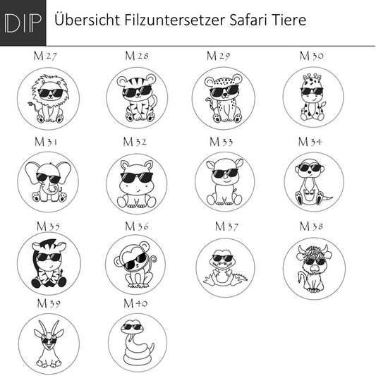 Filzuntersetzer - Safari Tiere